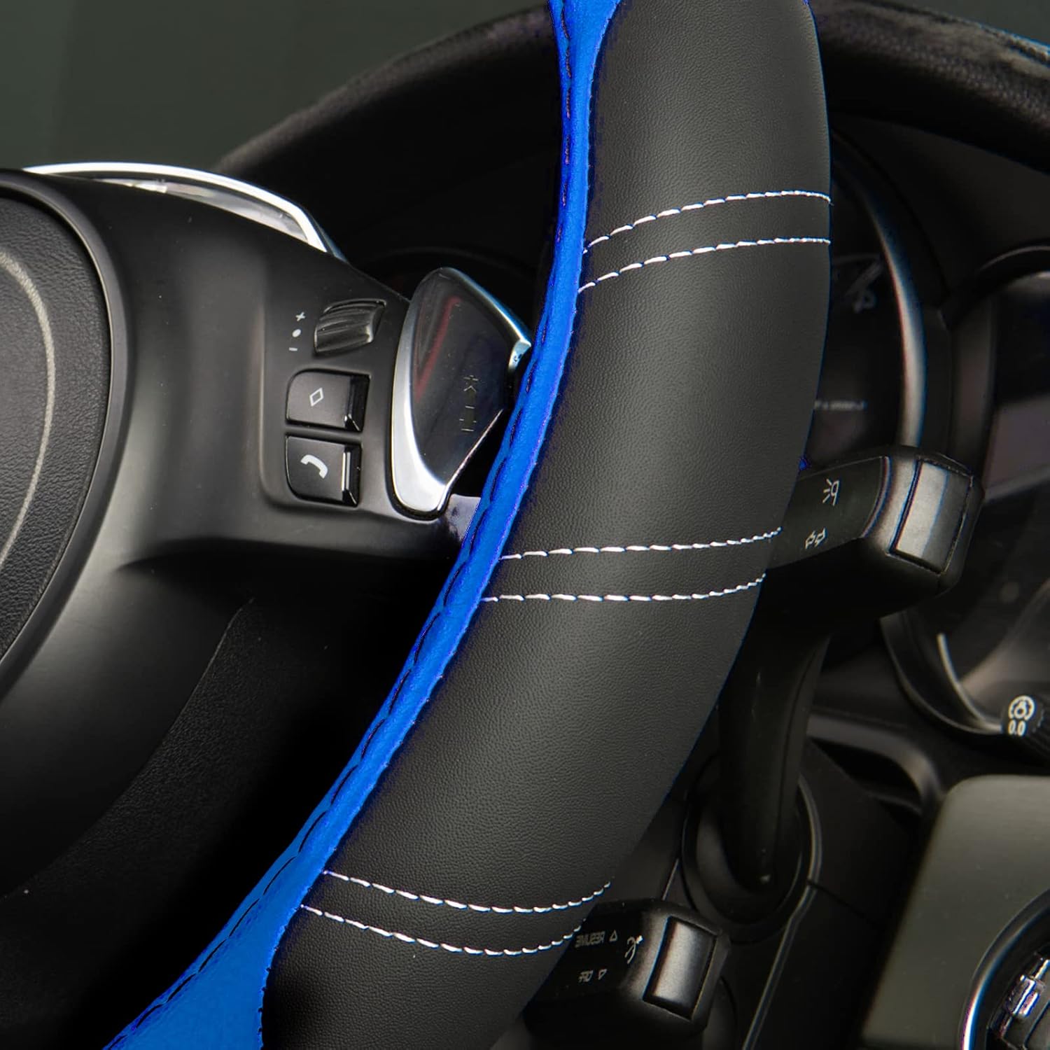 CAR PASS Line Rider Microfiber Leather Sporty Steering Wheel Cover Universal Fits for 95% Truck,SUV,Cars,14.5-15inch Anti-Slip Safety Comfortable Desgin (Black-Blue)