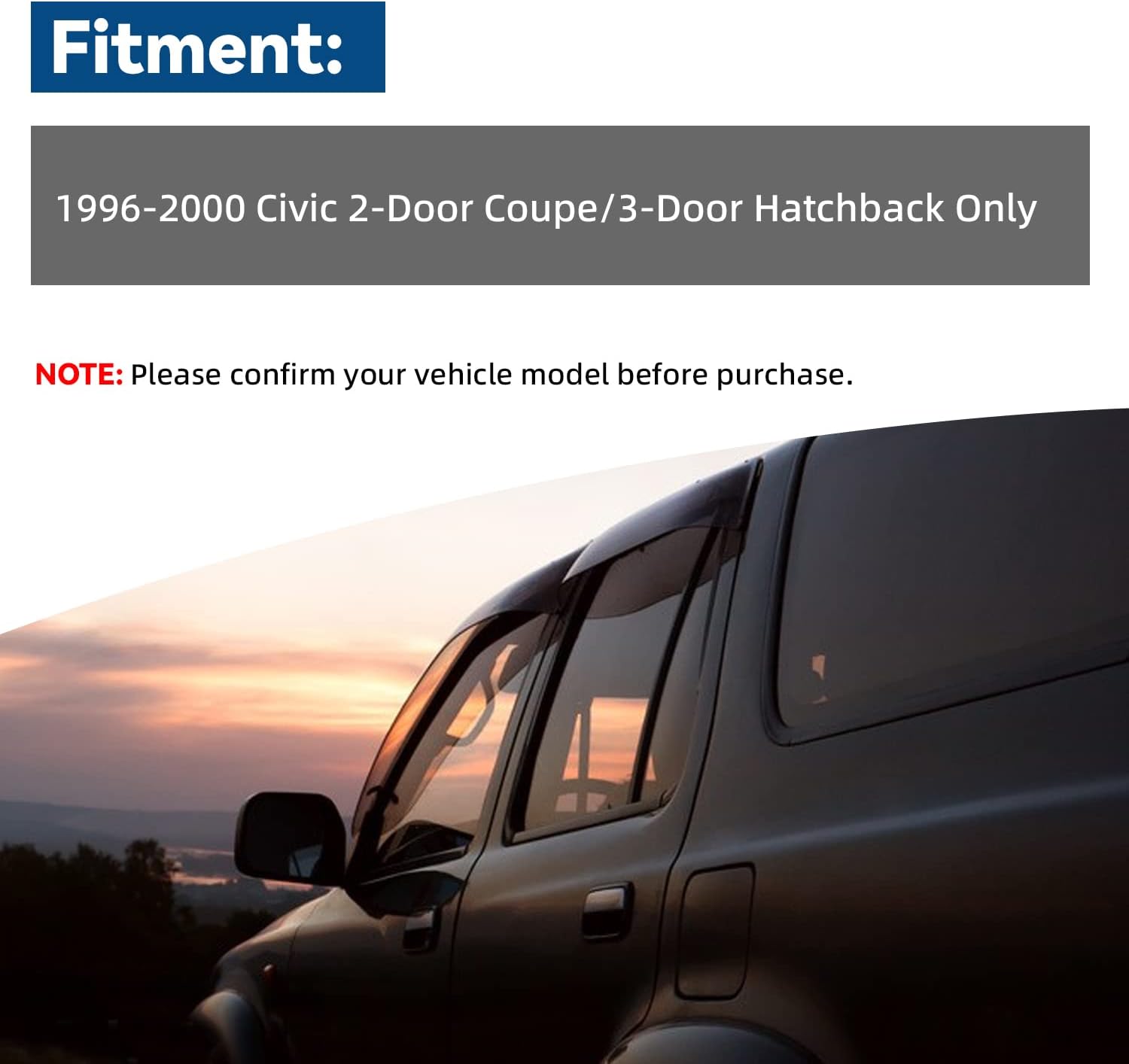 - Fit: 1996-2000 Honda Civic 2-Door Coupe/3-Door Hatchback Only