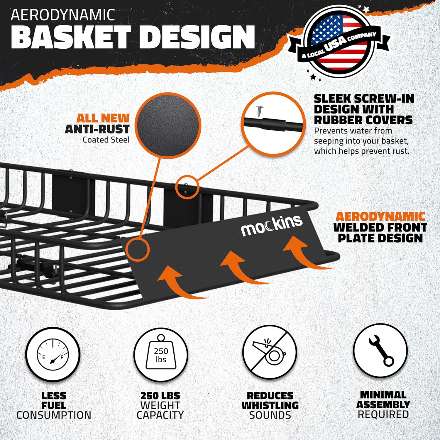- ALL-WEATHER ROOF BASKET CARGO CARRIER : Add a rugged, sleek edge to your vehicle with our matte black car racks for roof storage. Built to carry up to 250 lbs., our car roof top cargo carriers mount easily for car roof rack storage on any vehicle with crossbars. The weatherproof, anti-rust steel frame adds durability, while the aerodynamic roof cargo basket reduces drag to improve fuel efficiency. A smart rooftop cargo basket for SUV roof , this roof rack cargo carrier keeps storage simple.