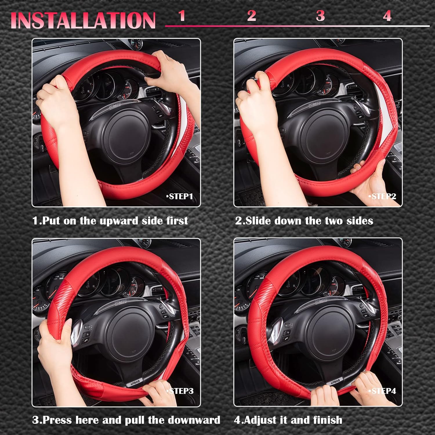 - UNIVERSAL FIT:Fits for Standard-size steering wheels with diameter 14 1/2 inch to 15 inch(37cm to 39cm)
