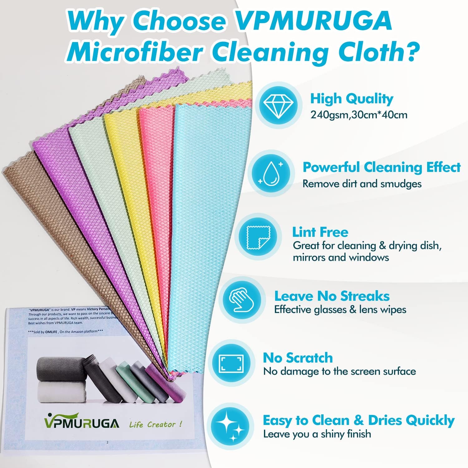 - VPMURUGA Cutting Edge fish scale Microfiber cleaning cloths are Nanoscale Dish rag Streak-free lint-free.Perfect for wiping down any surface,they are ideal for kitchen, bathroom shower door. Can pick up spills and splashes like magic. Our microfiber cloth are best for cleaning drying dishes,glass quartz counter top & polishing glass,glassware,eyeglass,lens,window,mirror,screen,computer,PC TV screen.Unique fish scale wave can catch dirt dust easily remove smudges water spots fingerprints fast.