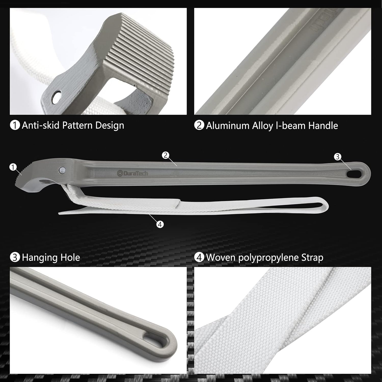 - Features a lightweight aluminum I-beam handle and a strong, woven polypropylene strap that grips tightly without scratching or damaging the surface