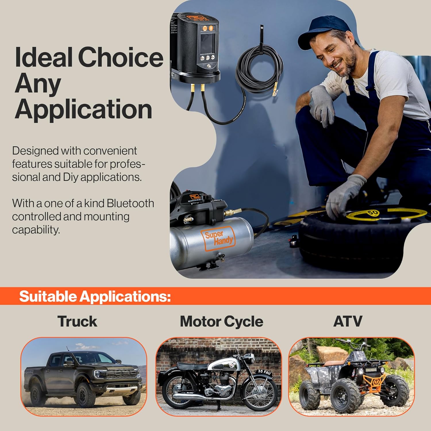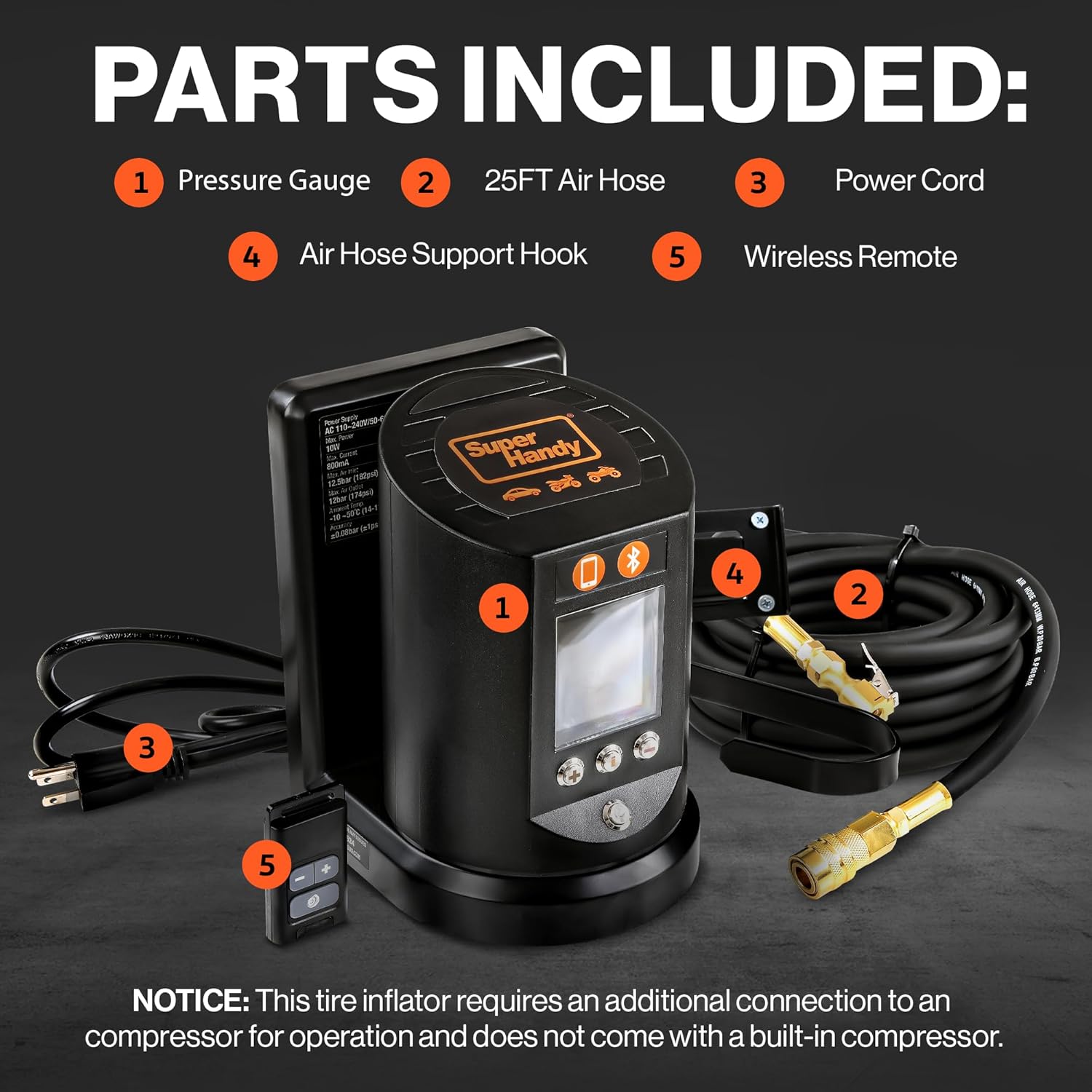 SuperHandy Automatic Tire Pressure Gauge - Wall Mountable, App/Bluetooth Control, High-Accuracy Digital Gauge, 25FT Air Hose, Ideal for Cars, Trucks, ATVs, and More