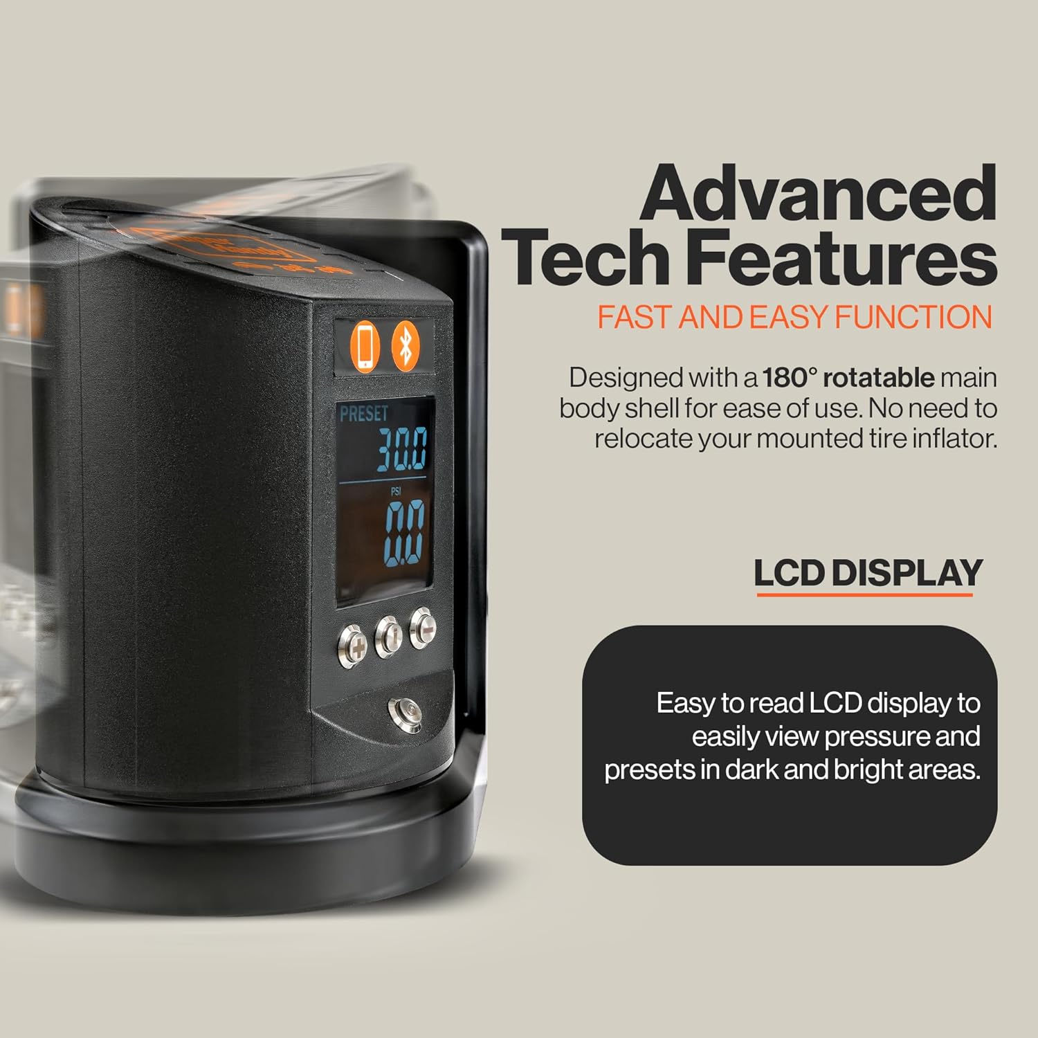 - Elite Design: The pressure gauge boasts a modern aesthetic look, lightweight, shock-resistant construction & vandal-resistant switches for long life. The large LCD display is easy to read, and the device provides audible and visual warnings for pressure ratings. Can be operated through Bluetooth Remote and mobile APP.