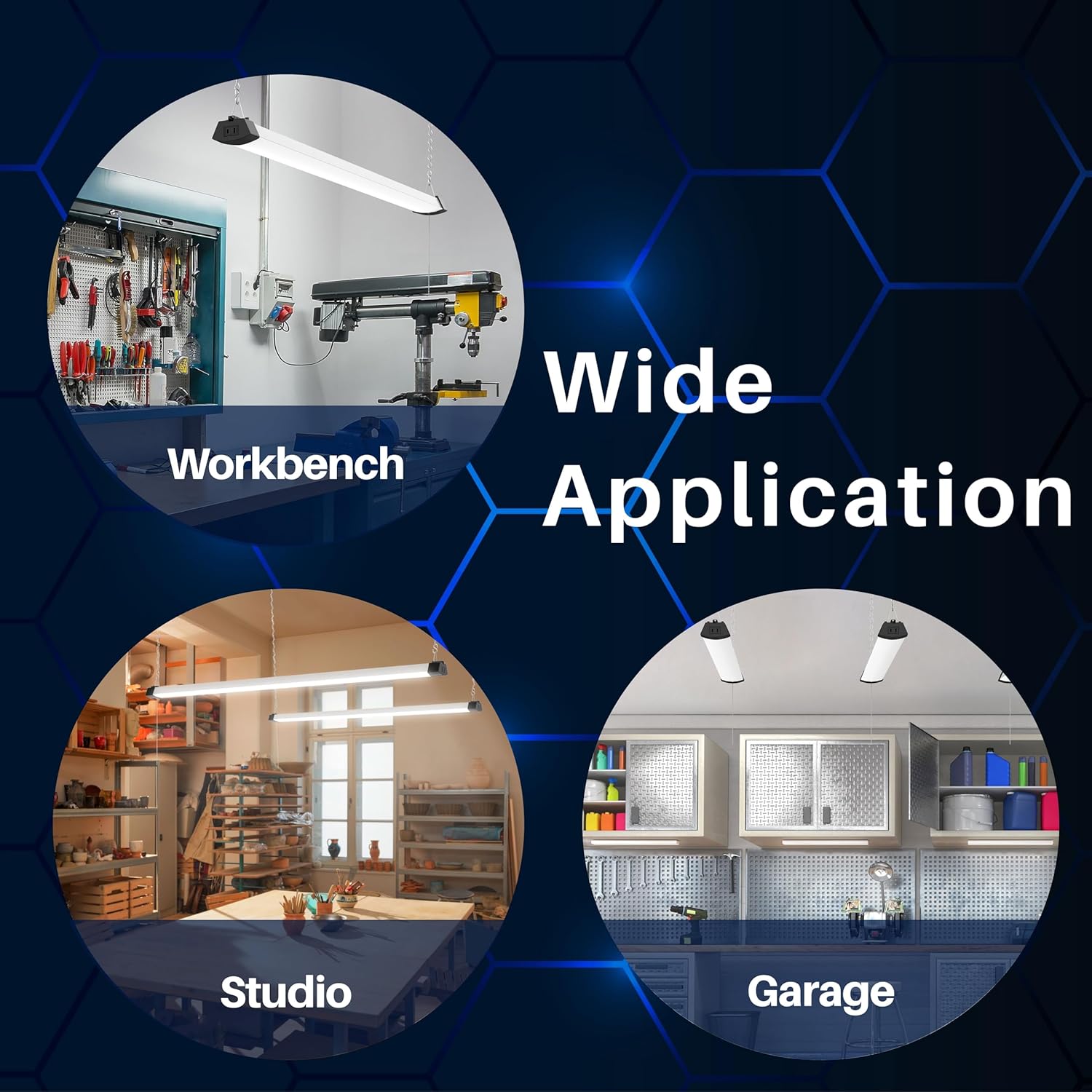 - SIMPLE INSTALLATION: Our shop light can be easily mounted onto any surface or hung from its hooks. Whether you need overhead lighting or task-specific illumination, our shop light has got you covered.
