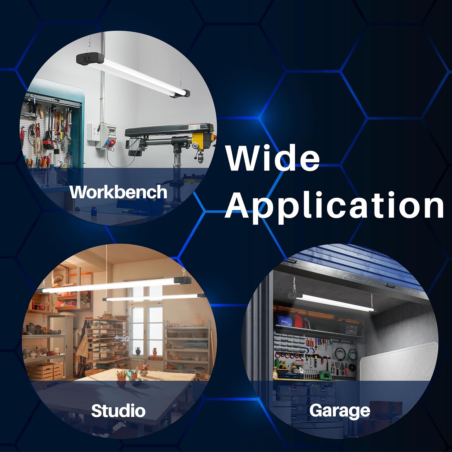 - LINKABLE: Link up to 4 units per circuit to effectively brighten your workspace. Install flush mount or hanging from your location of choice.