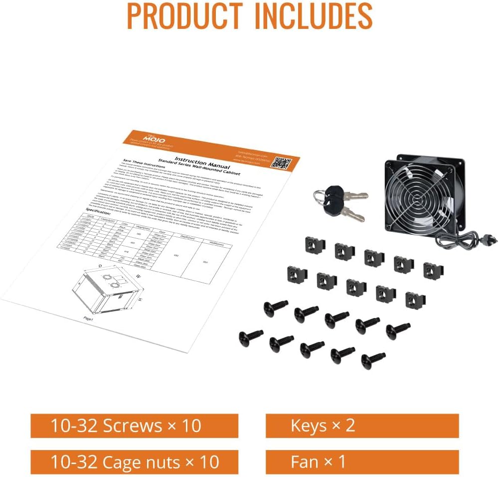 - Ventilation and Security: one-built-in top fans and flow through mesh doors to prevent overheating of the network rack
