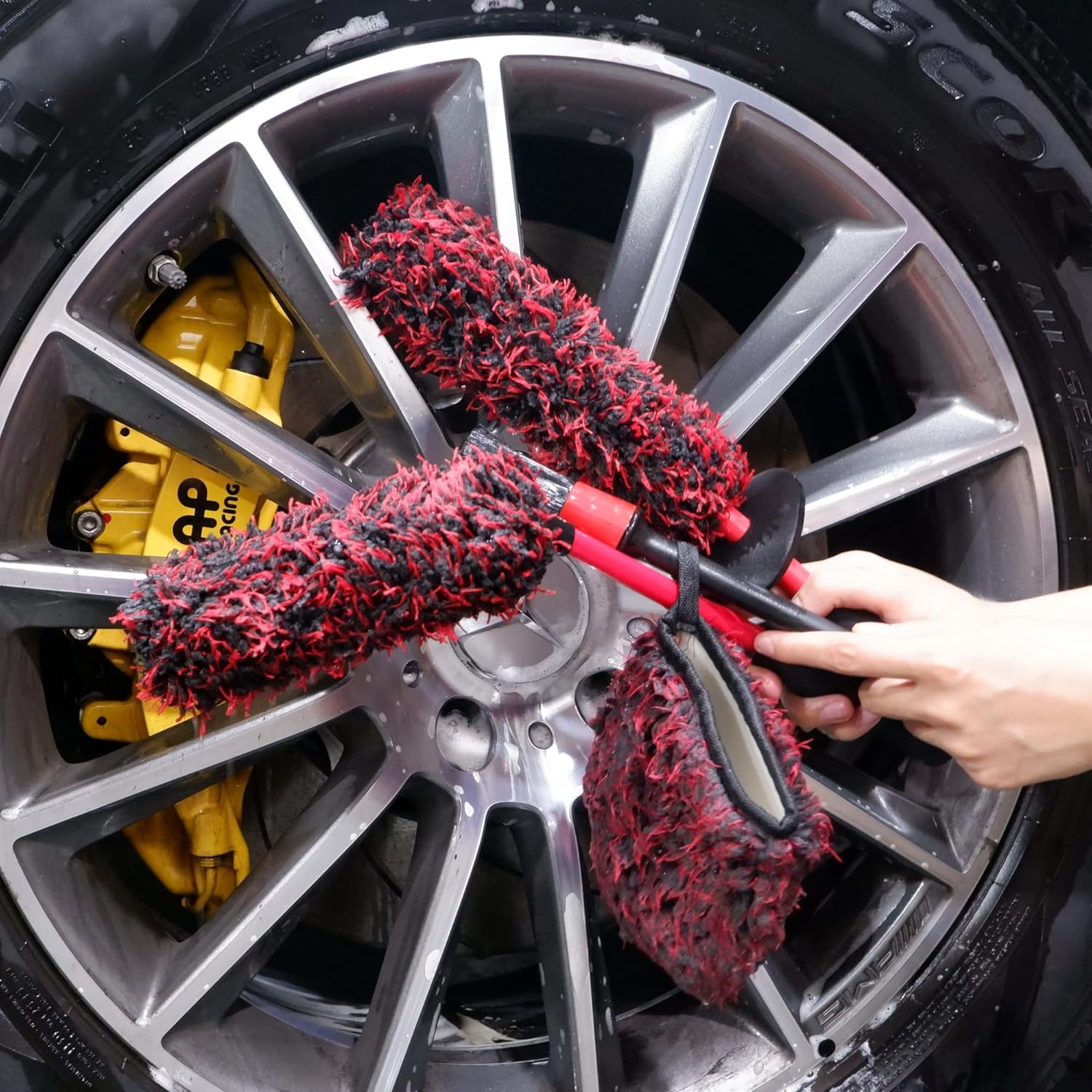 - EASY MAINTENANCE: The premium microfiber used for these wheel cleaning brushes and wheel mitt rinses and air dries easily between uses, same to the detailing brush&tire brush
