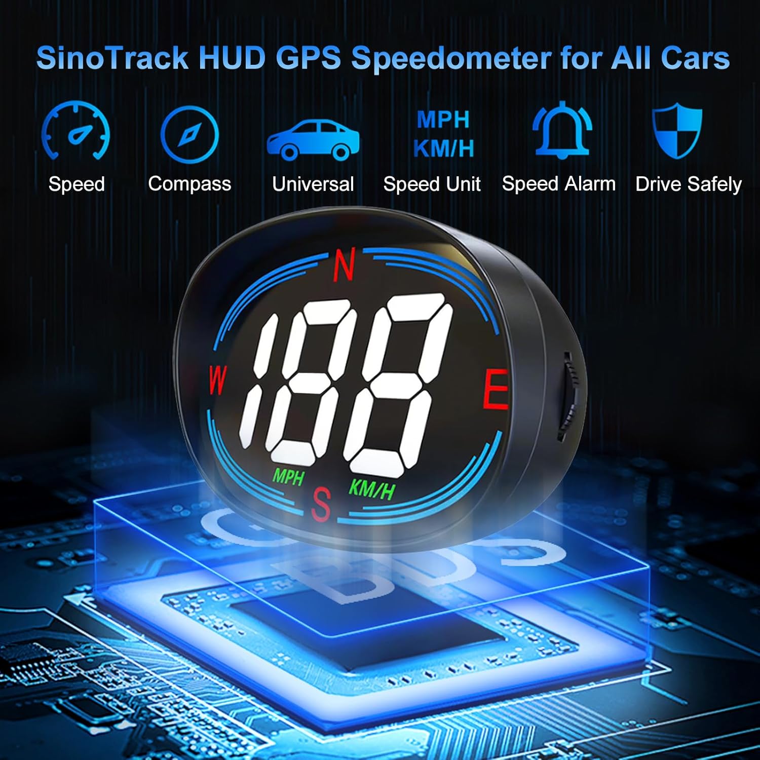 - SinoTrack H2 In-Car GPS Speedometer: A new arrival 2024 HUD with a large 2.7-inch screen and important driving features including speed, compass, and speeding warnings. A highly adaptable safe driving gadget for your car