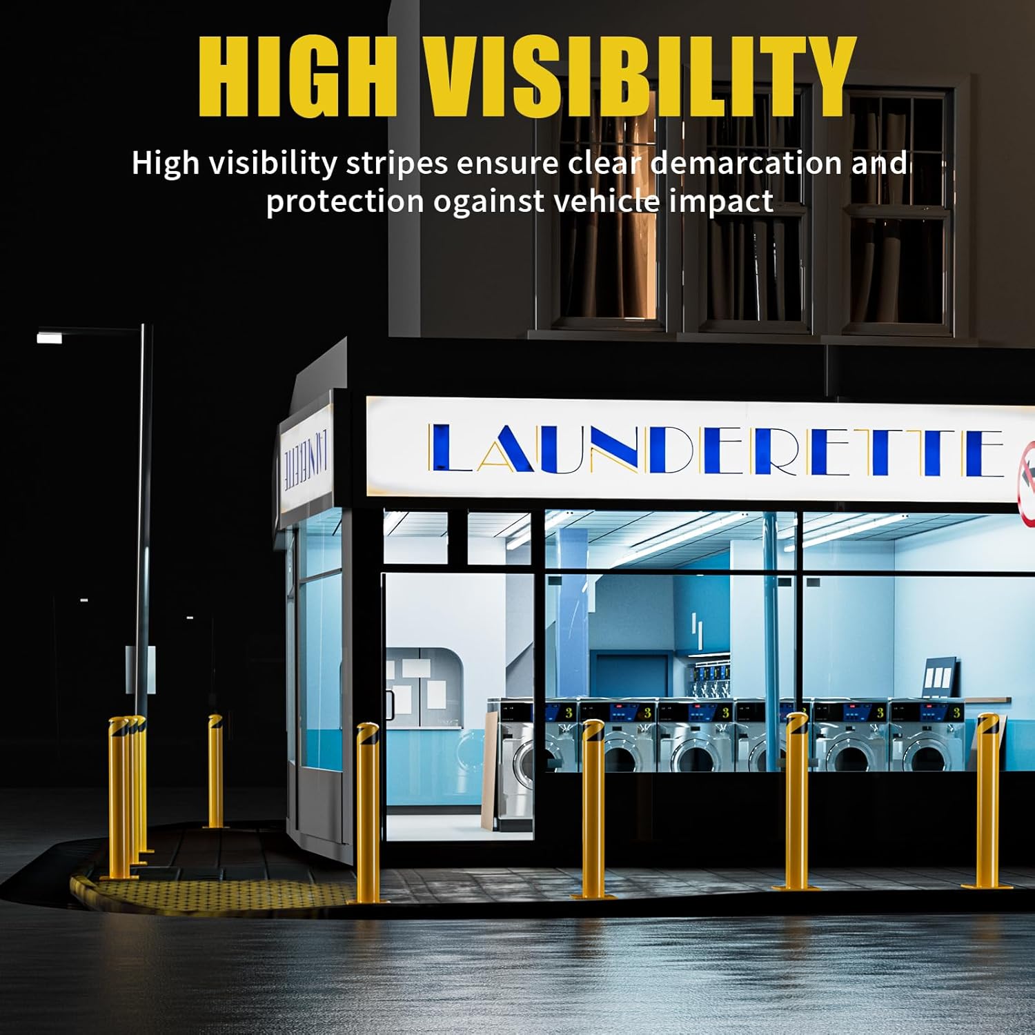- 【High Visibility Safety Bollard】Bright yellow color feature alongside black and yellow reflective tape on the top to enhance visibility in low light, night, or bad weather conditions. Our heavy duty bollard pole would be a good choice for you, and there are different heights metal parking barrier for you to choose: 36’’/ 42’’/ 48’’/ 52''