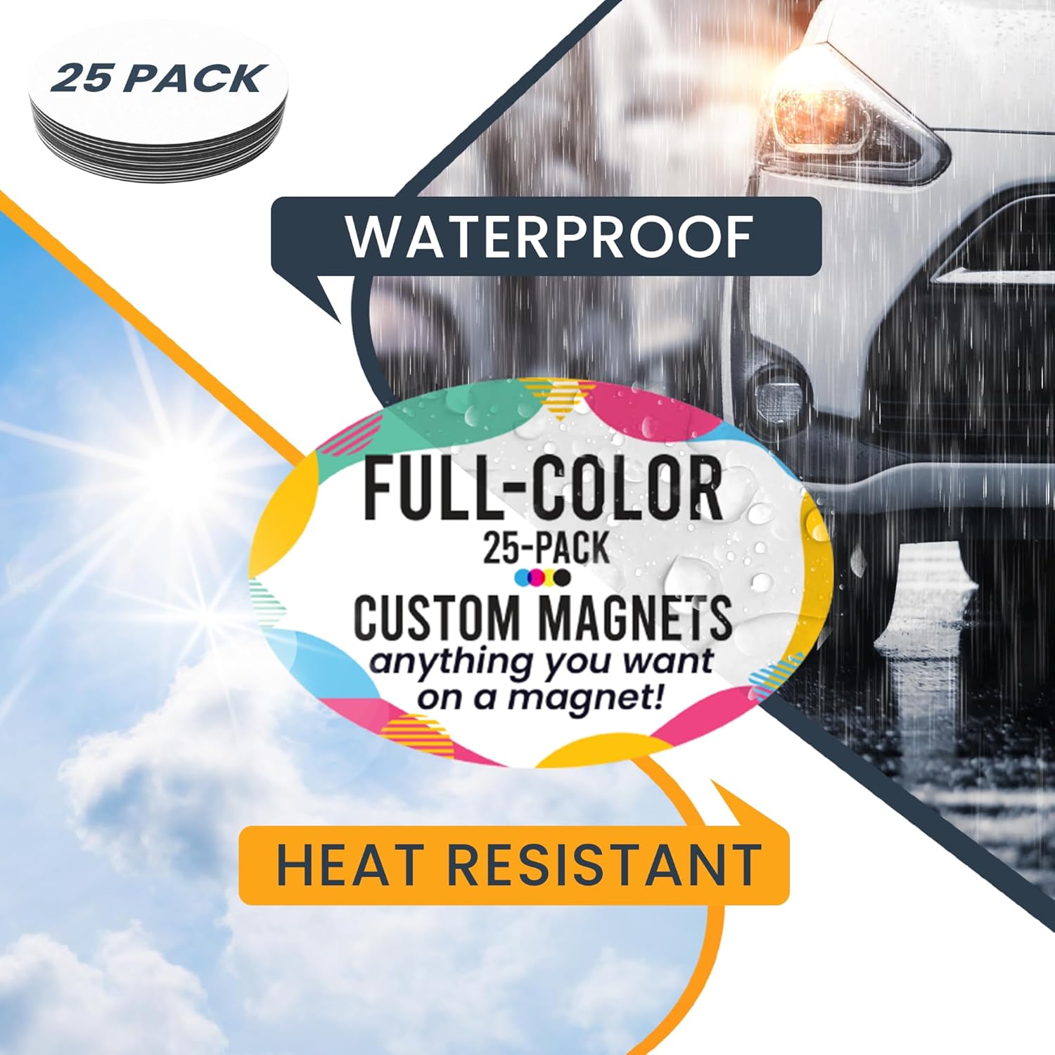 - Customize your vehicle or home with this good-quality personalized magnet made from our most durable magnetic vinyl. Ideal for trucks, lockers, mailboxes, refrigerators, and more, this versatile magnet is built to last. It is waterproof and heat-resistant, making it ideal for outdoor use. Printed with UV-resistant inks, it remains fade-resistant. Our magnets are non-reflective, ensuring they blend seamlessly with any surface. 𝐍𝐨𝐭𝐞: 𝐄𝐧𝐬𝐮𝐫𝐞 𝐲𝐨𝐮𝐫 𝐬𝐮𝐫𝐟𝐚𝐜𝐞 𝐢𝐬 𝐦𝐚𝐝𝐞 𝐨𝐟 𝐬𝐭𝐞𝐞𝐥. 𝐓𝐡𝐢𝐬 𝐦𝐚𝐠𝐧𝐞𝐭 𝐰𝐢𝐥𝐥 𝐧𝐨𝐭 𝐚𝐝𝐡𝐞𝐫𝐞 𝐭𝐨 𝐟𝐢𝐛𝐞𝐫𝐠𝐥𝐚𝐬𝐬, 𝐩𝐥𝐚𝐬𝐭𝐢𝐜, 𝐚𝐥𝐮𝐦𝐢𝐧𝐮𝐦, 𝐨𝐫 𝐚𝐧𝐲 𝐨𝐭𝐡𝐞𝐫 𝐧𝐨𝐧-𝐦𝐞𝐭𝐚𝐥 𝐬𝐮𝐫𝐟𝐚𝐜𝐞𝐬.