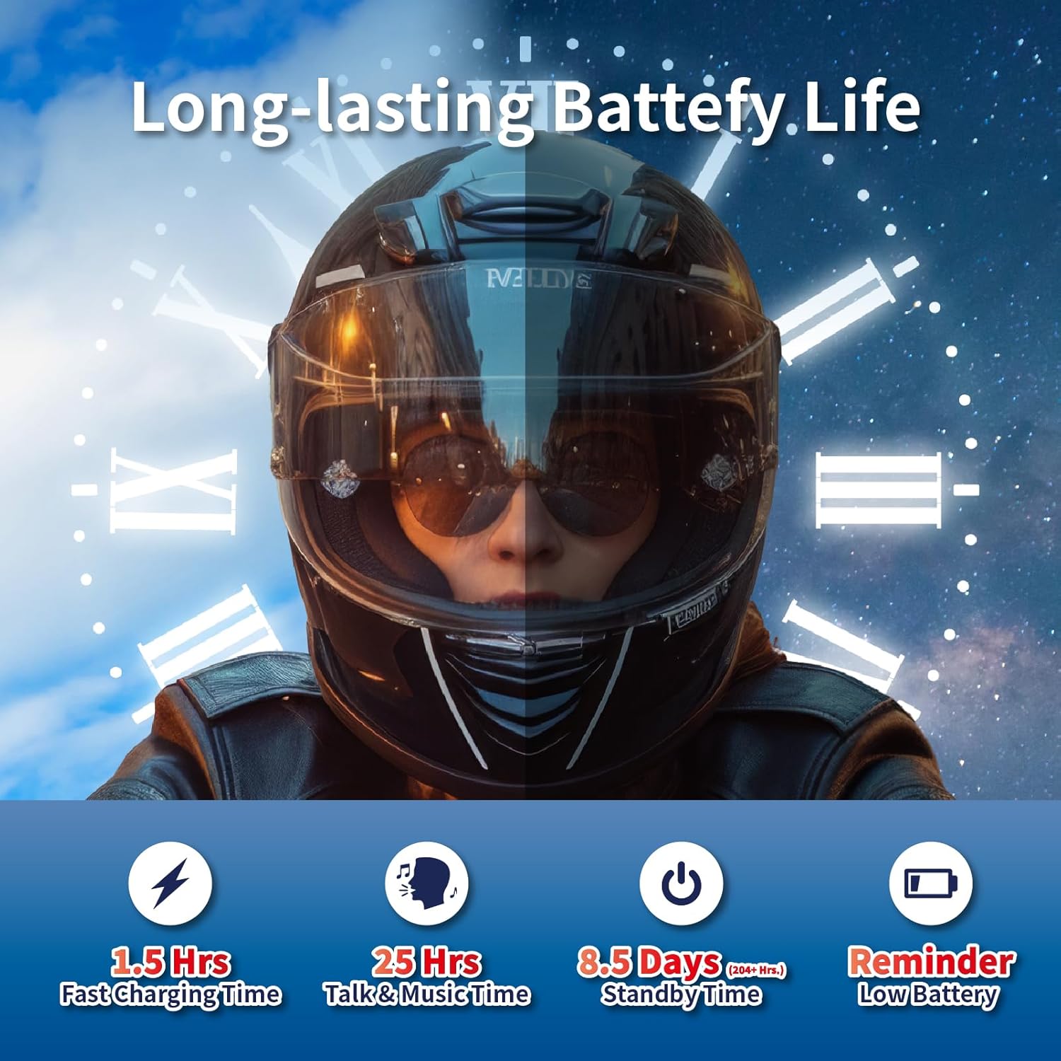 - 【Easy Installation plus Long-Lasting Battery Life & Excellent IP67 Waterproof】BIKECOMM SALUT includes two microphones to give you the choice between a boom microphone for open face or flip-face (convertible) helmets, and a button microphone for full face helmets. It is easy to install and meets IP67 waterproof standard to accommodate harsh weather conditions and withstand temperature from -10℃ to 50℃. The 720 mAh rechargeable battery provides up to 18 hours intercom talk time, 25 hours music playing time, and over a week of standby time.
