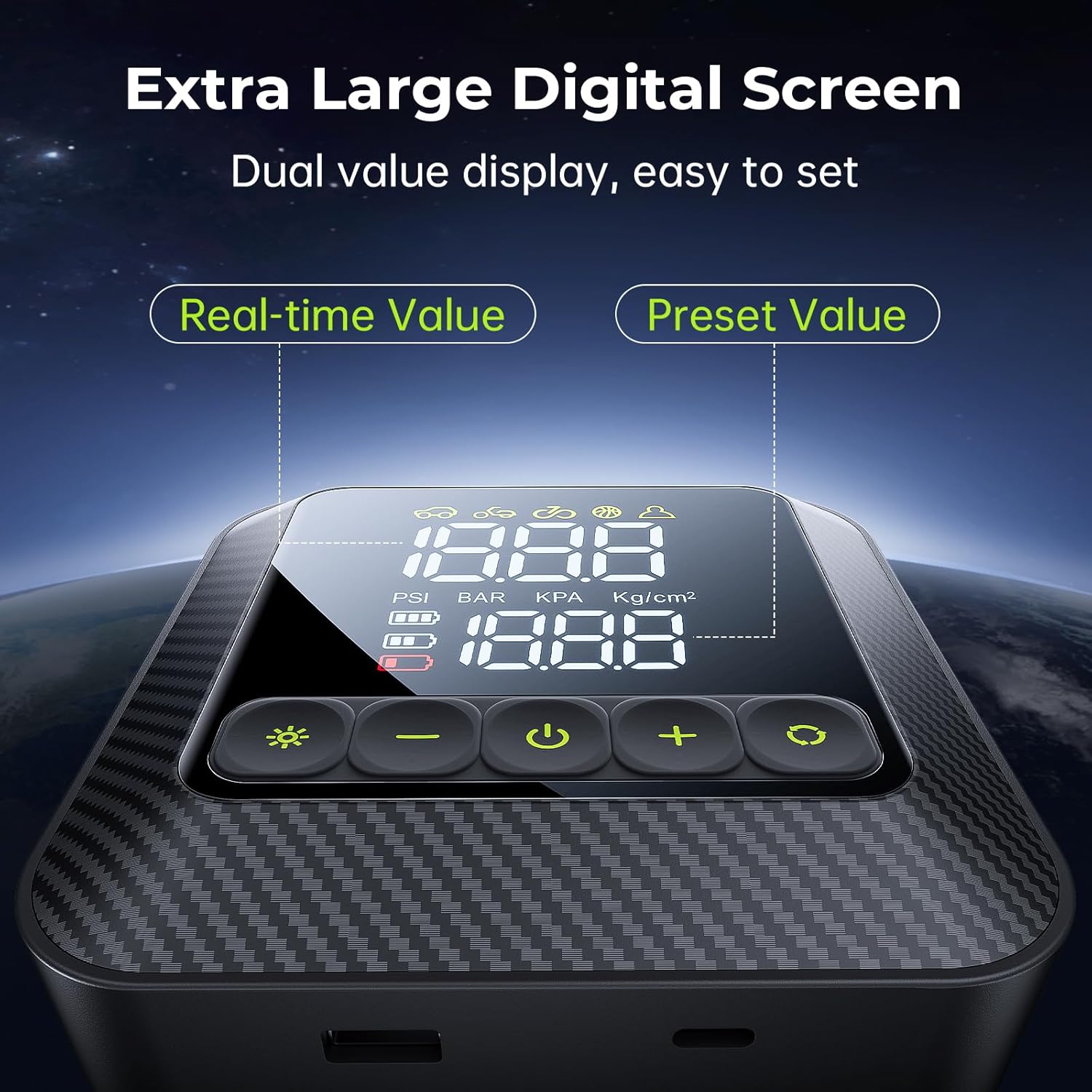 - Ultra-Large Bright LCD Display: Extra-large, easy-to-read LCD screen with dual pressure readings, allows for precise pressure monitoring