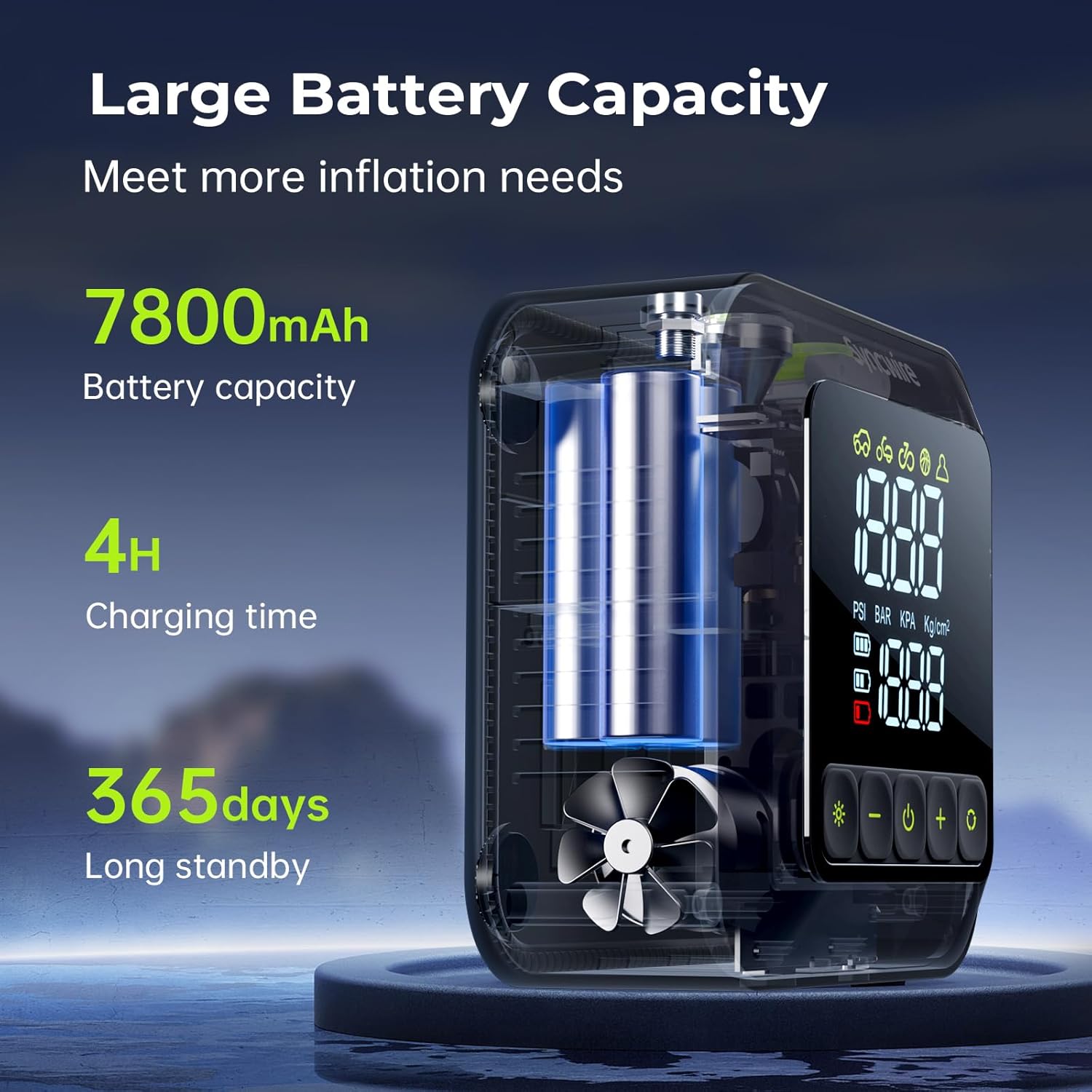 - Super-Fast Inflator with Extreme Precision: Inflates up to 3 times faster than competitors, with a rated pressure of up to 150 PSI and a 7800mAh battery, ideal for car tires, bikes, motorcycles, and balls