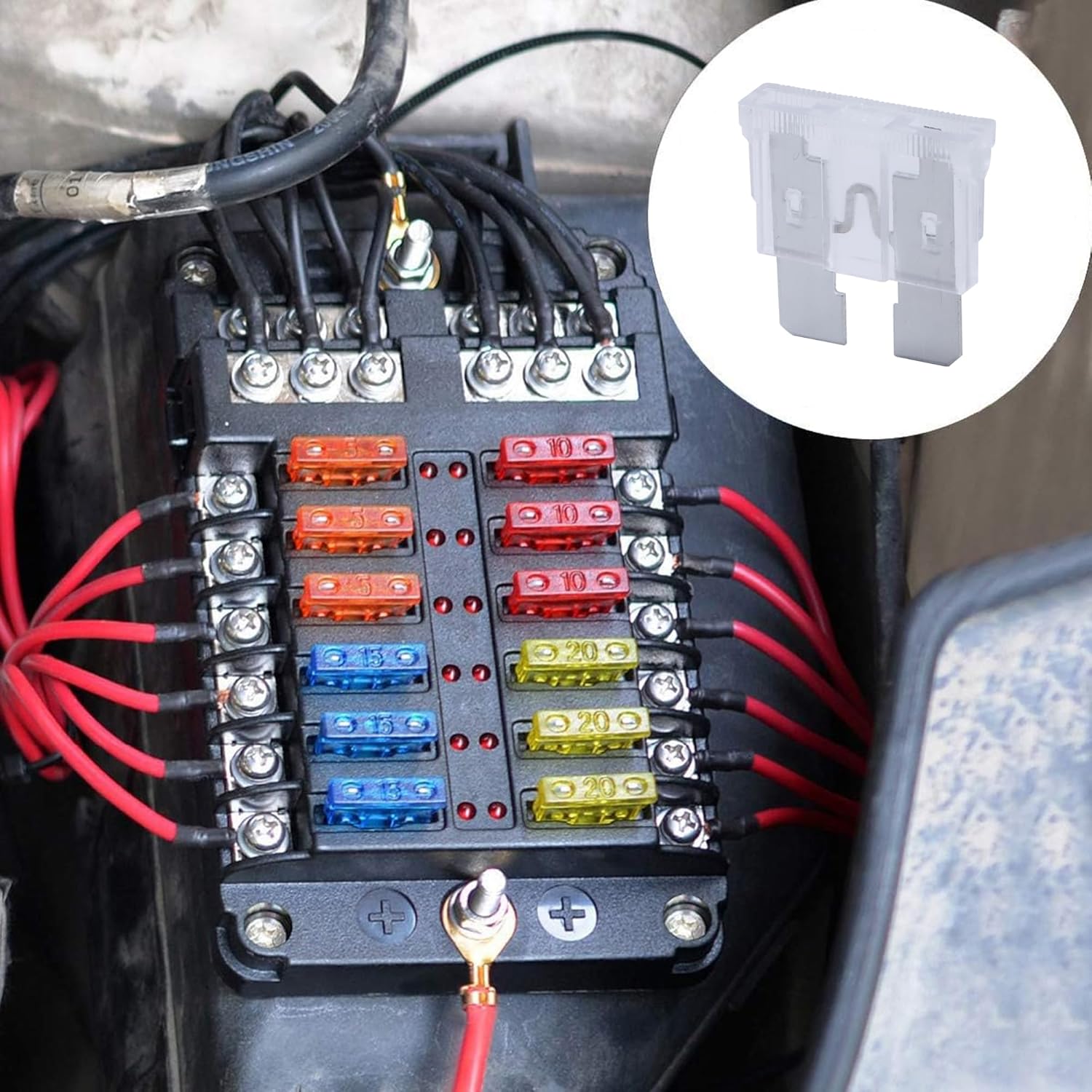 - CONVENIENT DETECTION - The plug-in blade fuses are made from transparent PES with zinc alloy inserts and transparent housings for viewing the fuse link status and quick detection of a blown fuse.