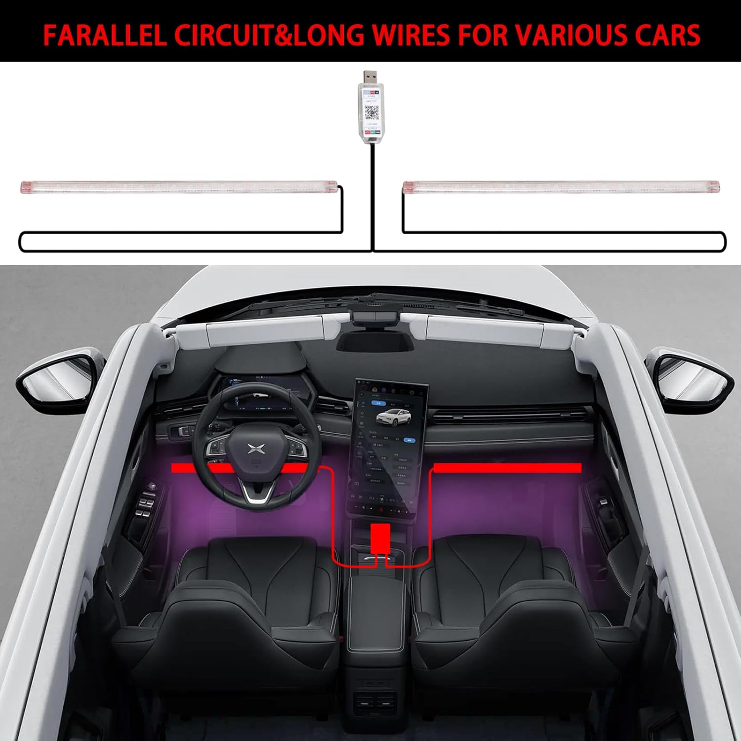- Easy to install: Our car led USB light is flexible and easy to install. Double-sided adhesive straps, directly inserted in USB port, test the lights, then adhere the light under the dash and ready to use. Please keep the USB port dry