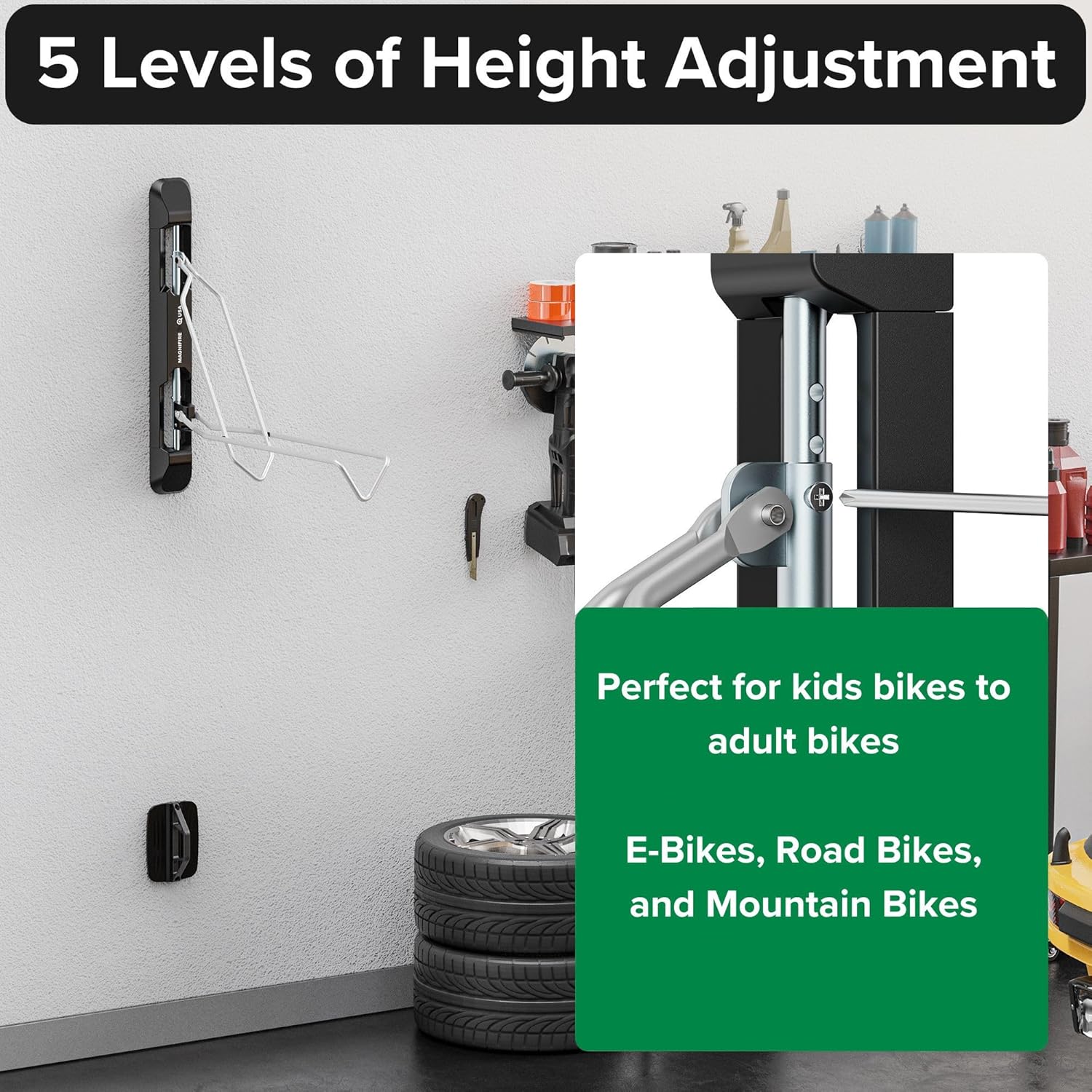 - Ease of Use - No heavy lifting required. Easy to load and unload simply by balancing your bike on the rear wheel and setting the front wheel into the garage bike hanger! Suitable for all ages and abilities.