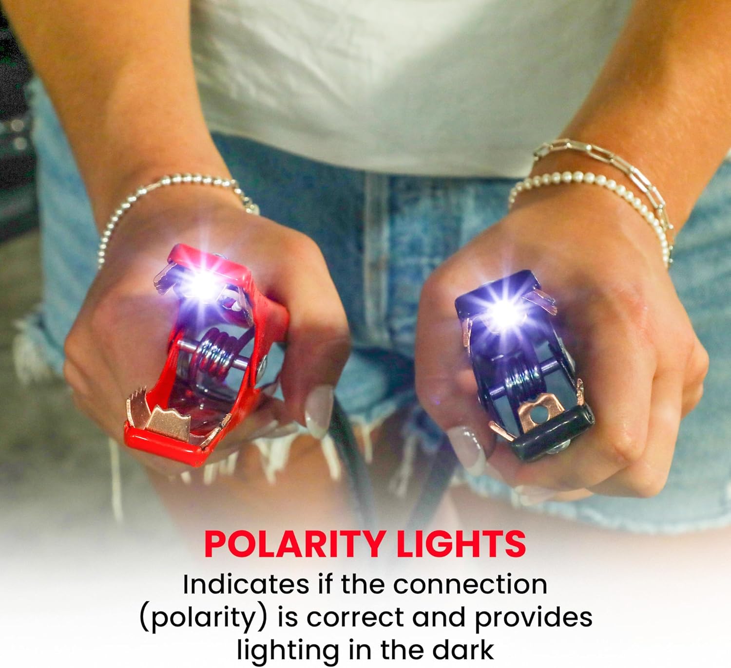 Jumper Cable | Heavy Duty Jumper Cables for Trucks, SUV | Self Rescue Car Jump Starter | Quick Connect, Built-in Lights, Portable | Prioritizing Safety | 6 Gauge Wire, 12 Ft.