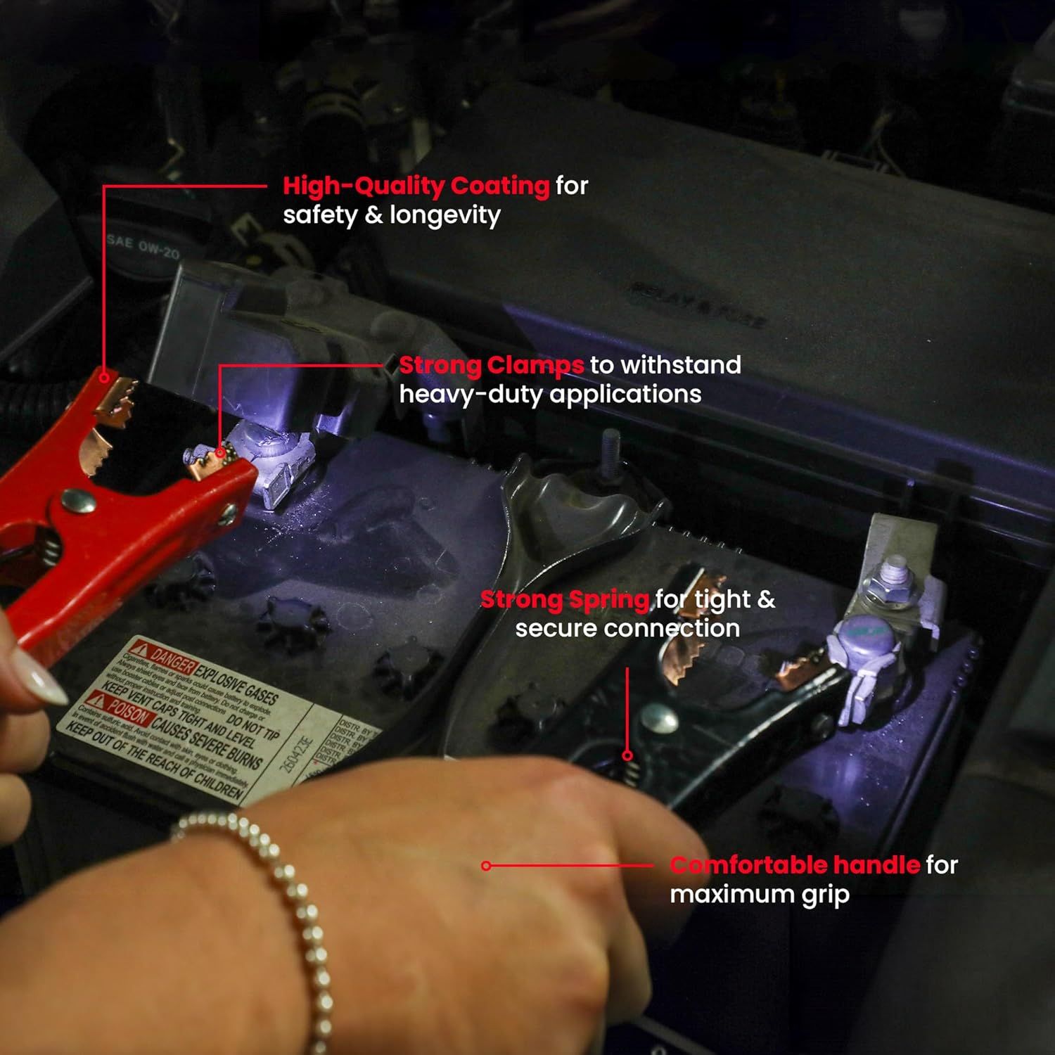 - Highly Durable, Heavy-duty - Crafted from strong materials, these self jumper cables for car are heavy-duty, capable of withstanding tough conditions, even cold weather, and repeated use. Made with rubber casing, high-quality plastic mold & 6 inches gauge wire.