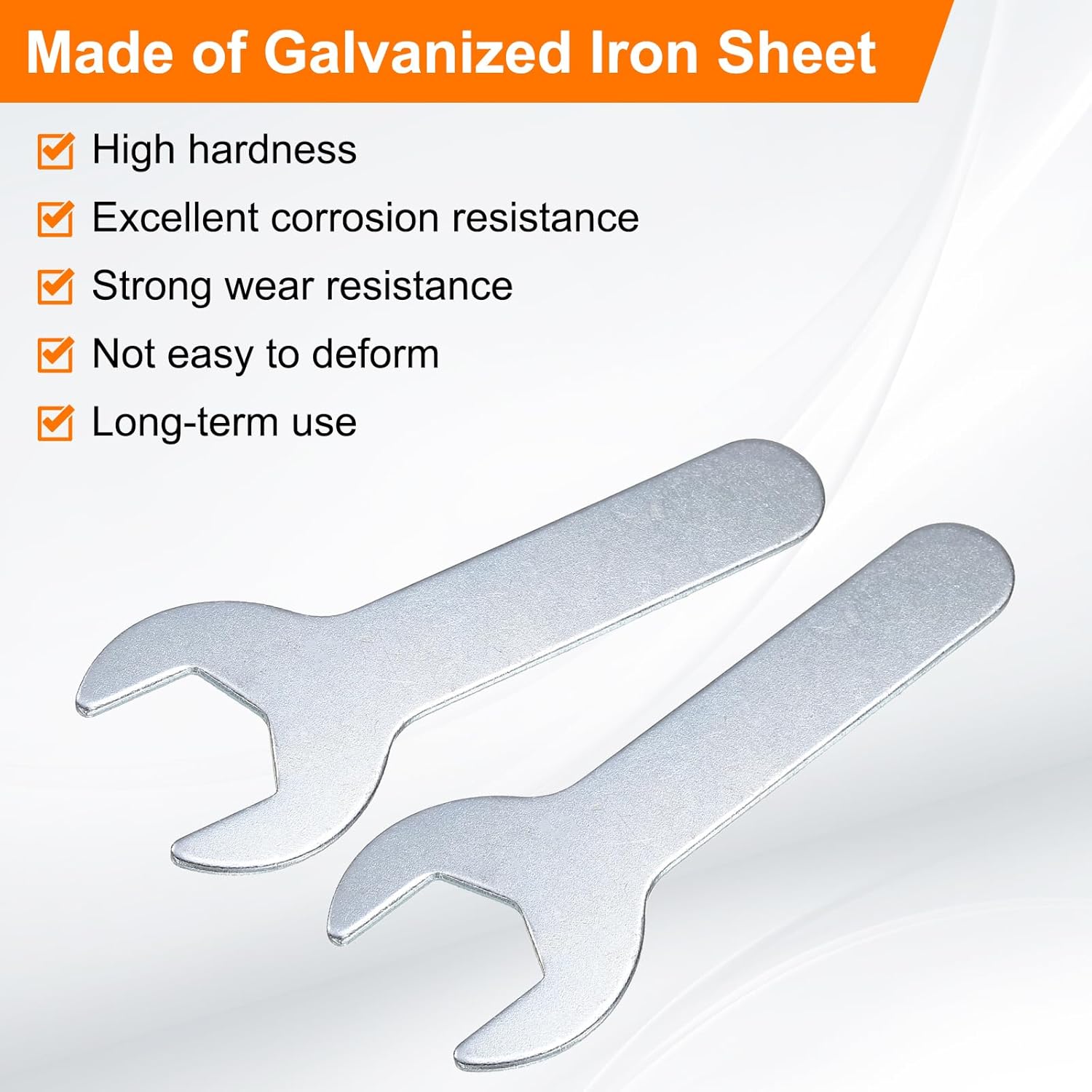 - Long Lasting - Our single open-end wrench is made of an iron plate, which has high hardness and excellent corrosion resistance. The surface galvanizing improves its wear resistance, keeps its surface smooth and reduces wear, is not easy to deform, and can be used for a long time.