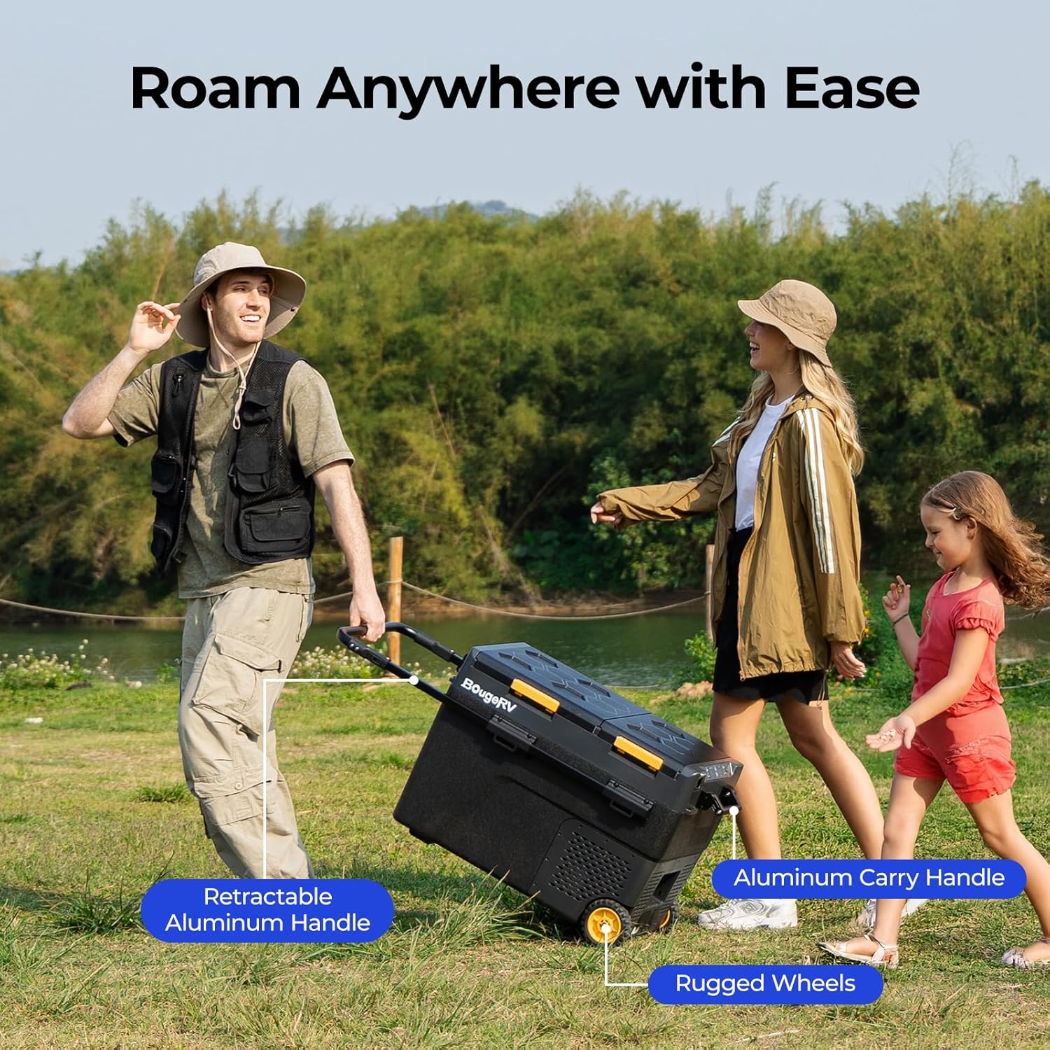 - Wheels & Handle for Easy Transport: This portable Dual Zone fridge comes with wheels and a telescopic handle, making it easy to transport from your car trunk to your campsite. Equipped with a solar charging port (60W max, 12V 5A), you can pair it with the BougeRV 173Wh battery and BougeRV100W solar panel, extending its outdoor usage time