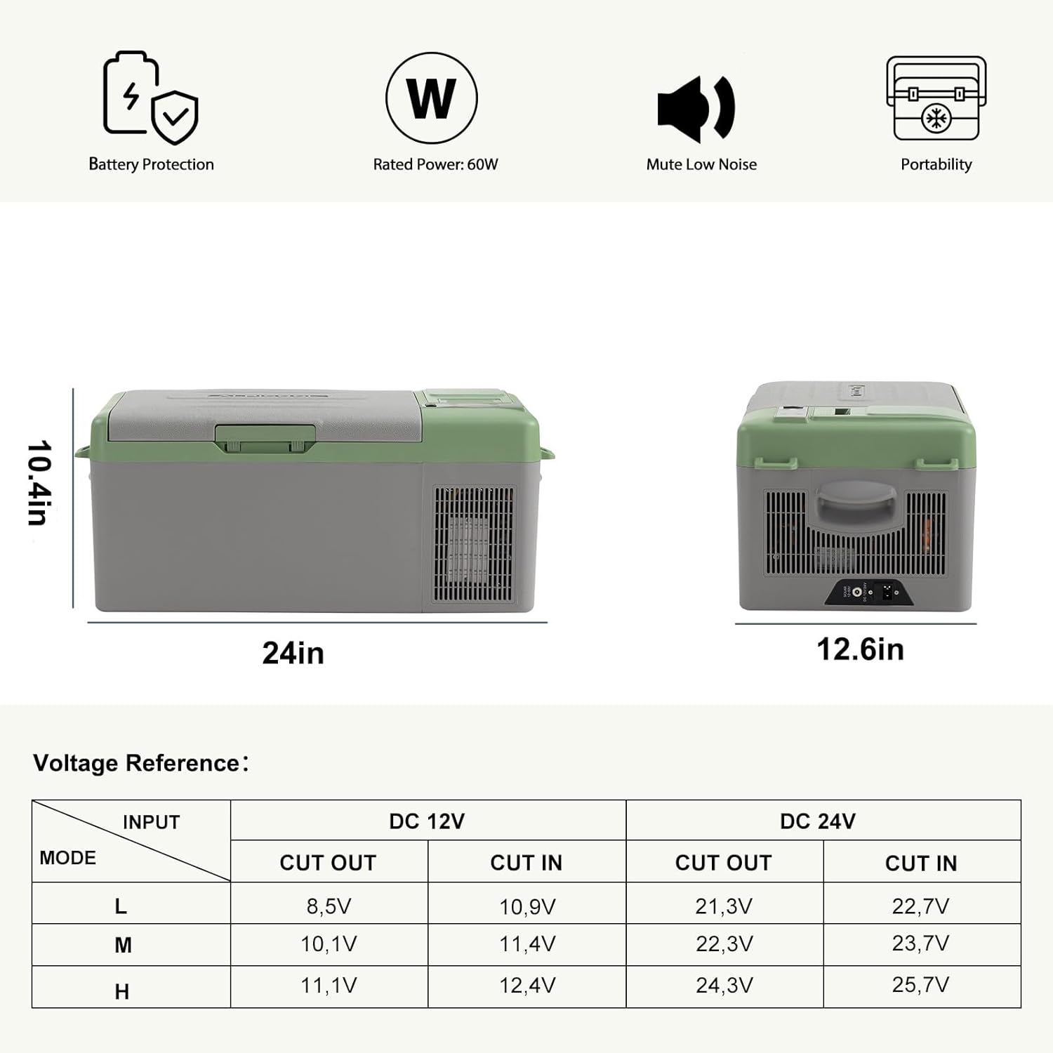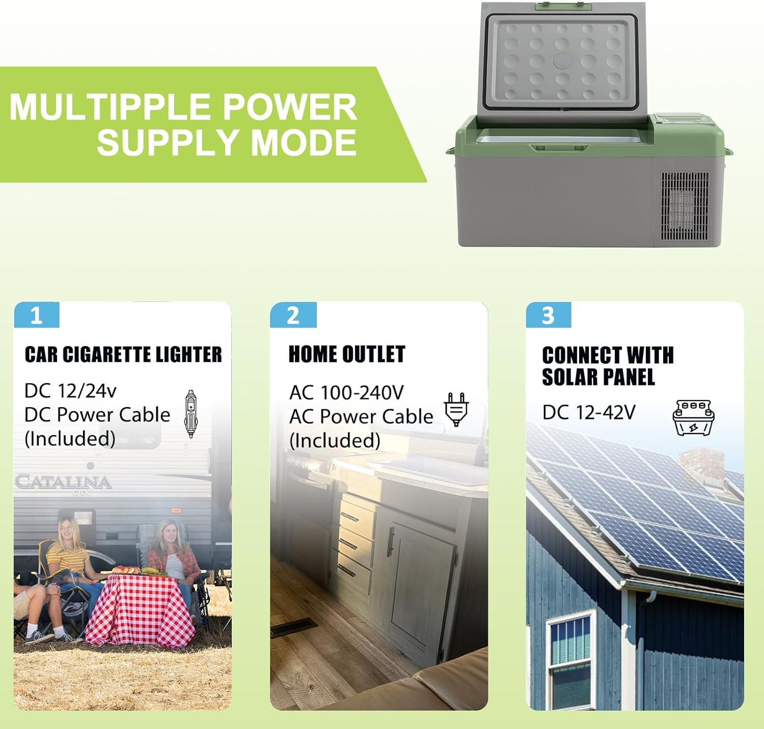 - Energy Efficient – Low power consumption works seamlessly with 12/24V DC car outlets or 110-240V AC for versatile use.Different cooling modes(MAX&ECO) can be adjusted as needed.