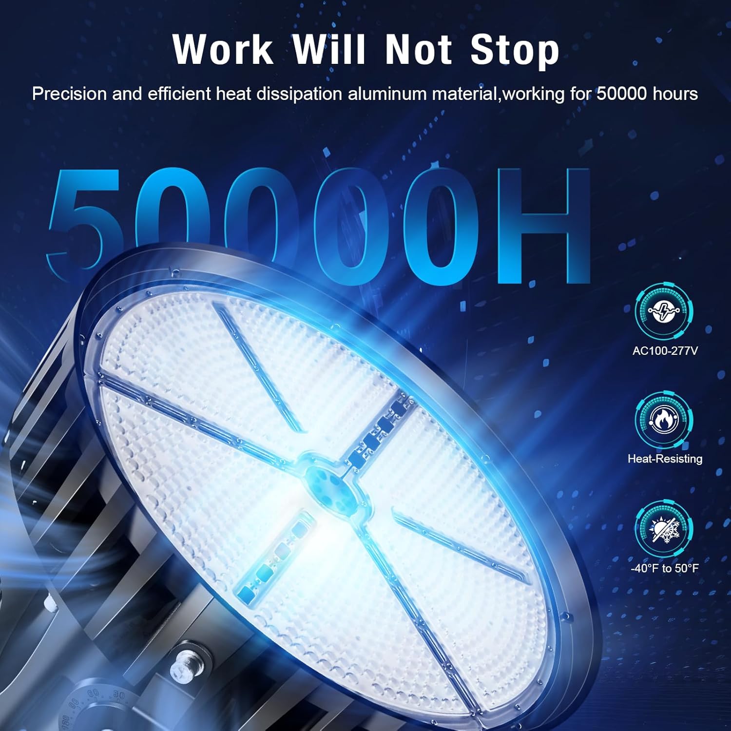 - Professional Sports Stadium Lighting: With a wide voltage range of AC 100-277V, it withstands grid fluctuations. Advanced circuit design and efficient heat dissipation materials ensure seamless operation. The heavy-duty chassis (22.24 x 22.24 x 13.98 inches) is a reliable choice for large-area high-altitude lighting