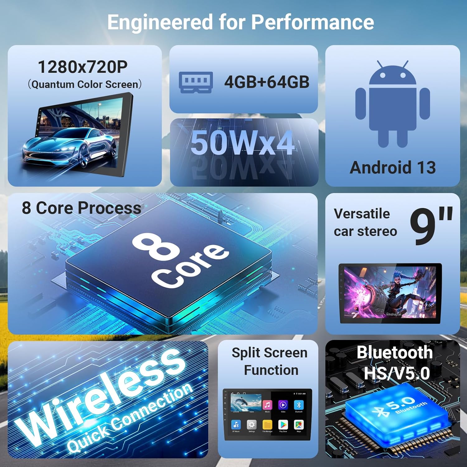 - 【64GB Storage & APK Flexibility】Expandable storage for apps, music, and videos, compatible with CarPlay and Android Auto. Install third-party APKs for personalized functionality.