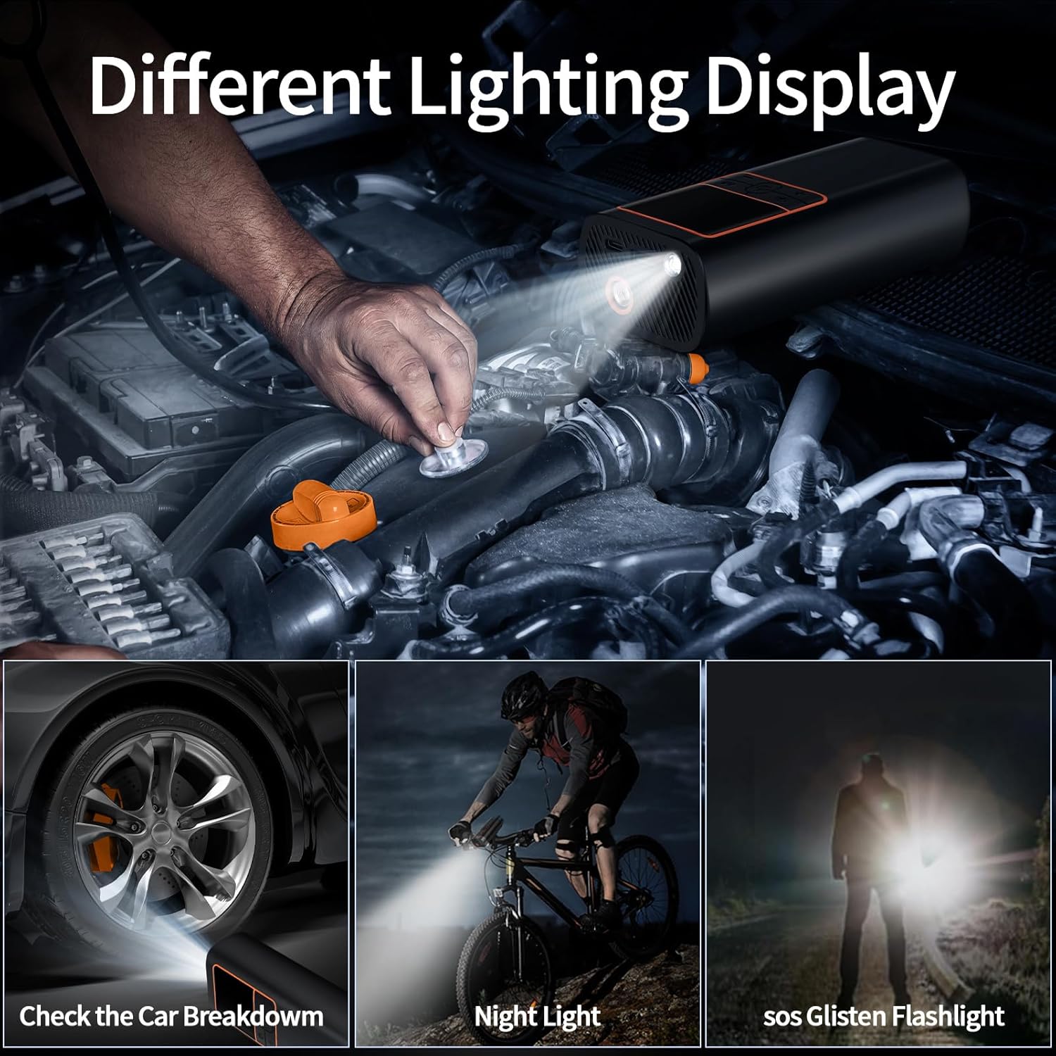 - 【Long Lasting Power Ttire Inflator】The all-in-one portable air compressor for car tires has a power bank that allows you to pump 7 vehicle tires, 20 motorcycles, 29 bicycles, 150 balls and other inflatables anywhere .