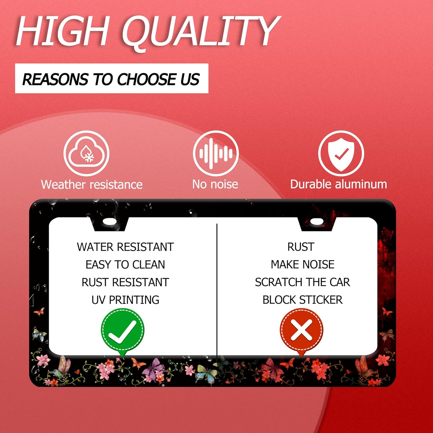 Colorful Butterfly License Plate Frame Beautiful Butterflies Flowers License Plate Holder Funny Stainless Steel Accessories Cars Decor with 2 Holes and Screws Fits Standard Us Ca Vehicles 12.2 X 6 in