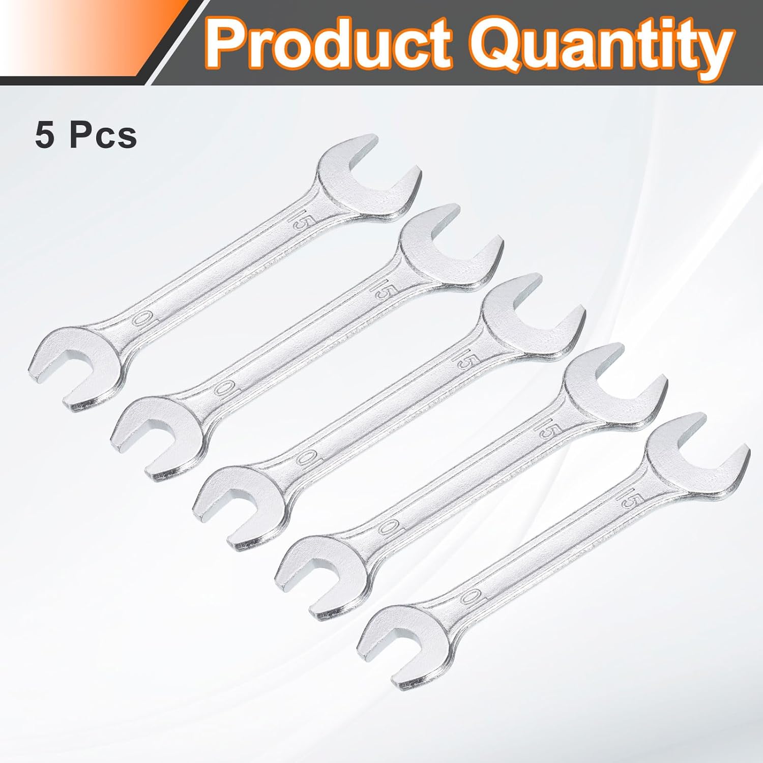 HARFINGTON 5pcs Double Open End Wrench 10mm x 15mm Metric 15 Degree Offset Angle Small Flat Head Wrench Galvanizing Open Ended Spanner for Automotive Repair Furniture Assembly