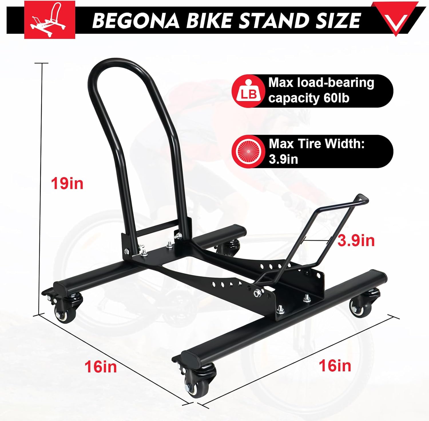 - Foldable And Adjustable Design:Bike stands for indoor storage collapse to 8.6" height for corners/car trunks. Adjustable:5-position bike holder accommodates 1.8"-3.9" tires.The single bike rack converts unused spaces into organized indoor bike rack setups. Ultimate portable bike stand for temporary parking