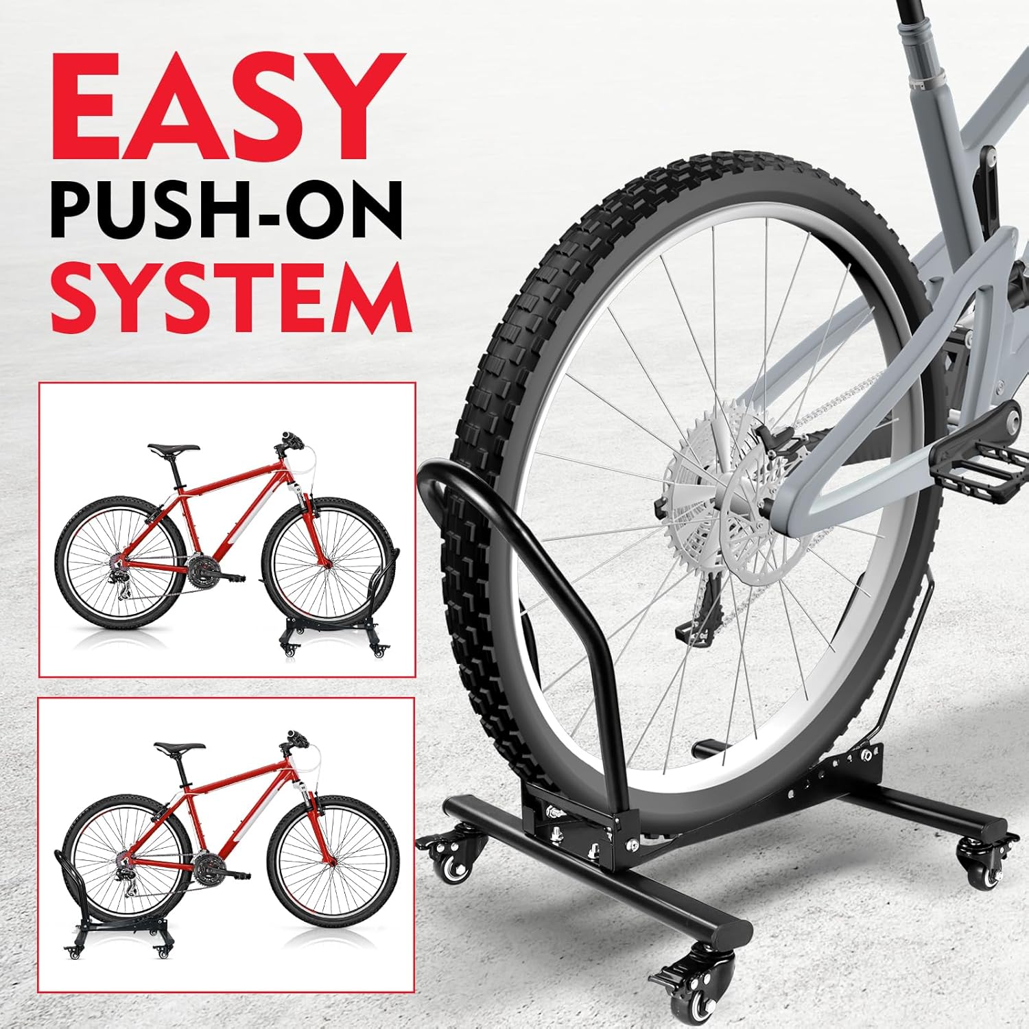 - Lockable Rolling Wheels:4 lockable 360° wheels transform this bike storage rack into portable bike stand. Move between garage/apartment then lock as stable floor bike stand. Combines indoor bike rack mobility with fixed-ground security
