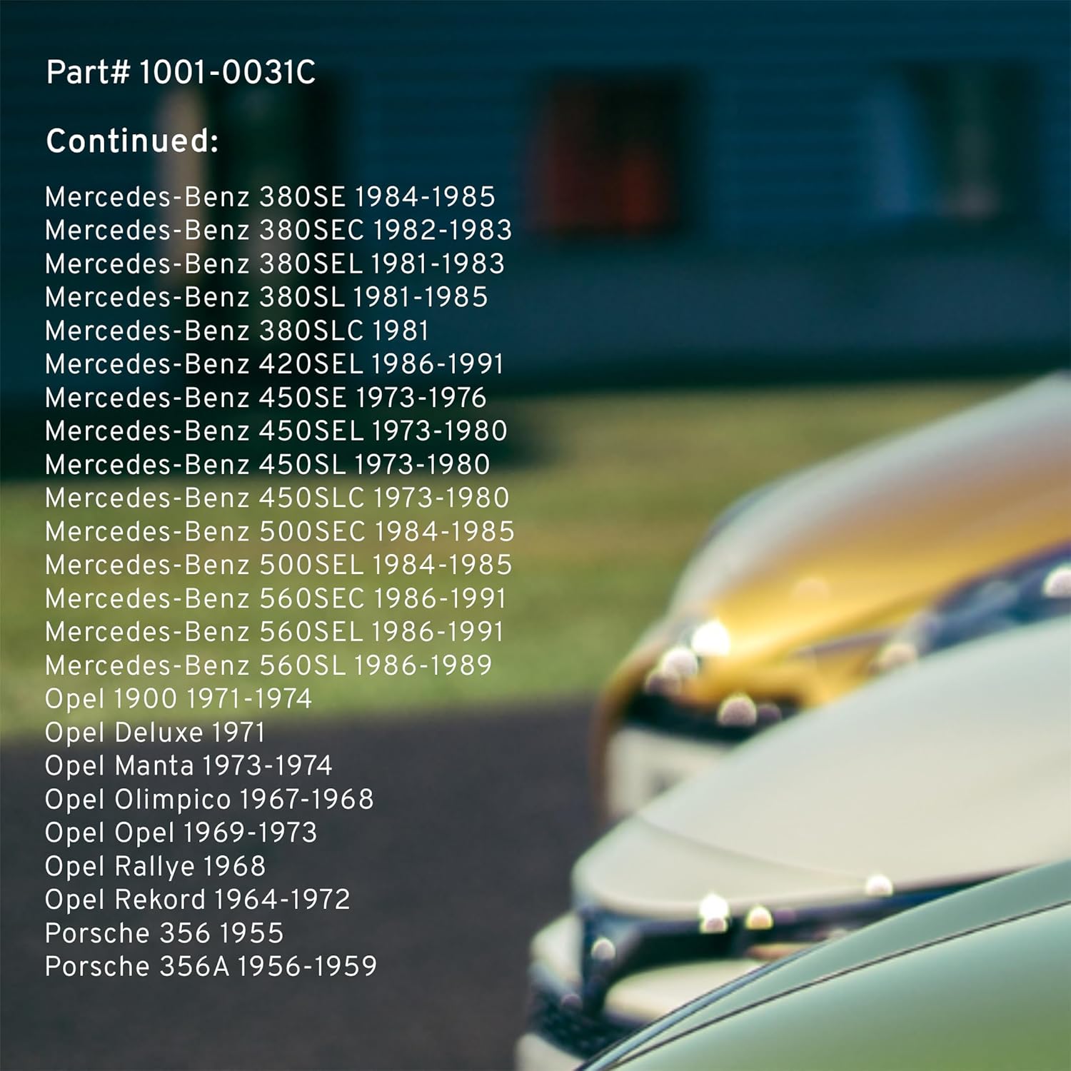 - FITMENT LIST: Select Models 1955-2004 PORSCHE/ ALFA-ROMEO/ VOLVO/ MERCEDES-BENZ/ MASERATI/ AUDI/ BMW/ OPEL/ SAAB/ VOLKSWAGEN (1001-0031C) Verify Fitment using AmazonConfirmedFit tool.