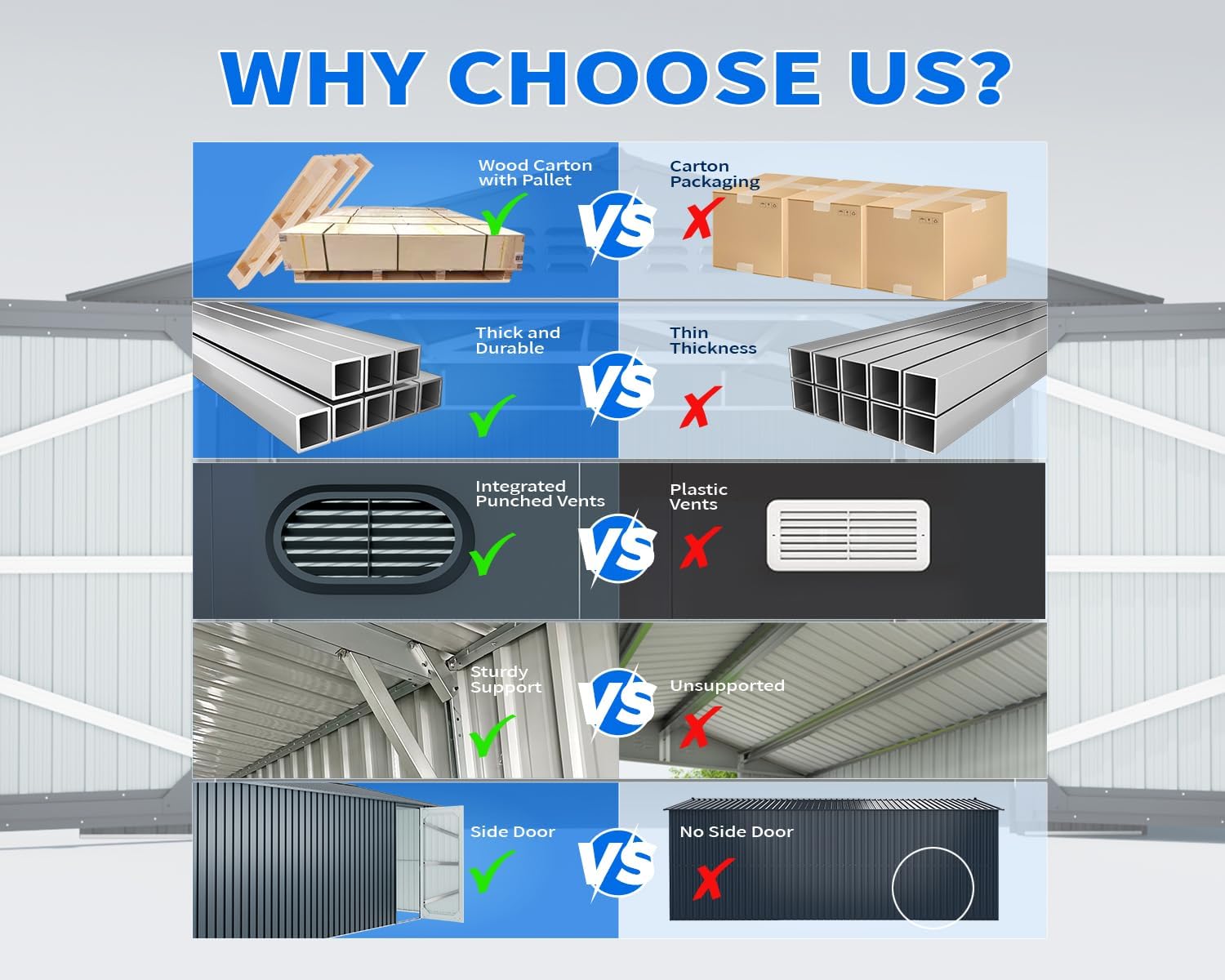 - 🏡 Strong & Durable Construction: Built with galvanized steel reinforcement, this 13x20 storage shed is rustproof, UV-resistant, and moisture-proof. Reinforced thick metal beams and braces provide robust roof support, ensuring garage shed can withstand harsh weather and serve you for years to come.