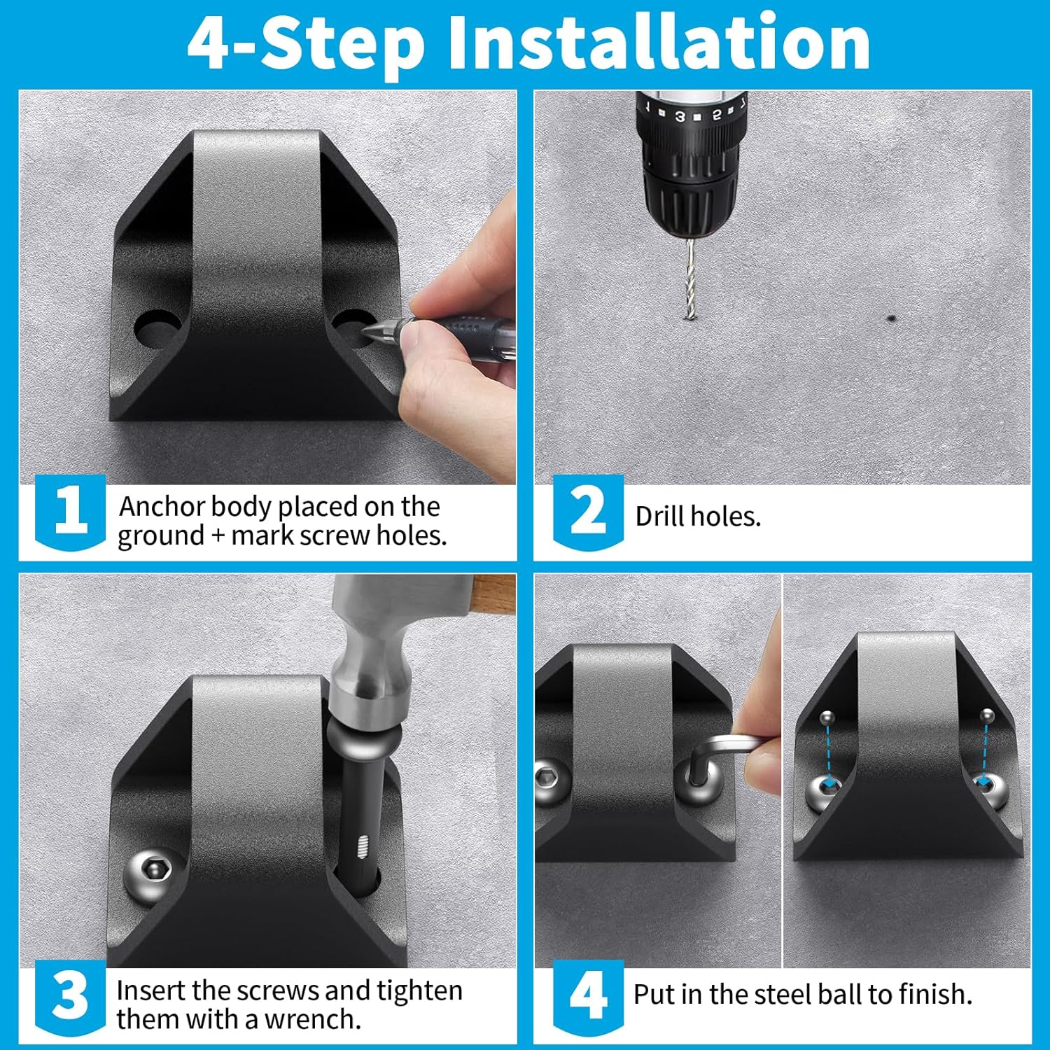 - 【Unique Steel Ball Anti-Theft System】 After installing, insert the included steel balls into the screw holes to lock down the anchor—prevents thieves from unscrewing or prying it loose, ensuring complete security.