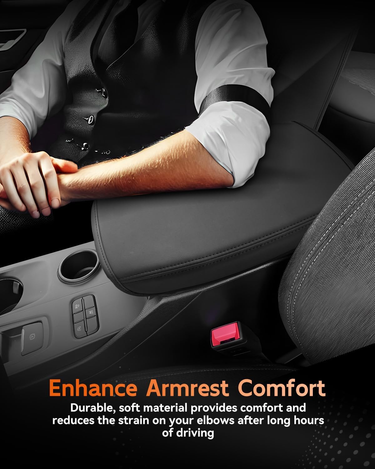 - [Easy To Install] Designed with a flexible elastic band to secure it to the center console (no tools required). With super stretch and pull resistance, it will not change the open/close function of the armrest box.