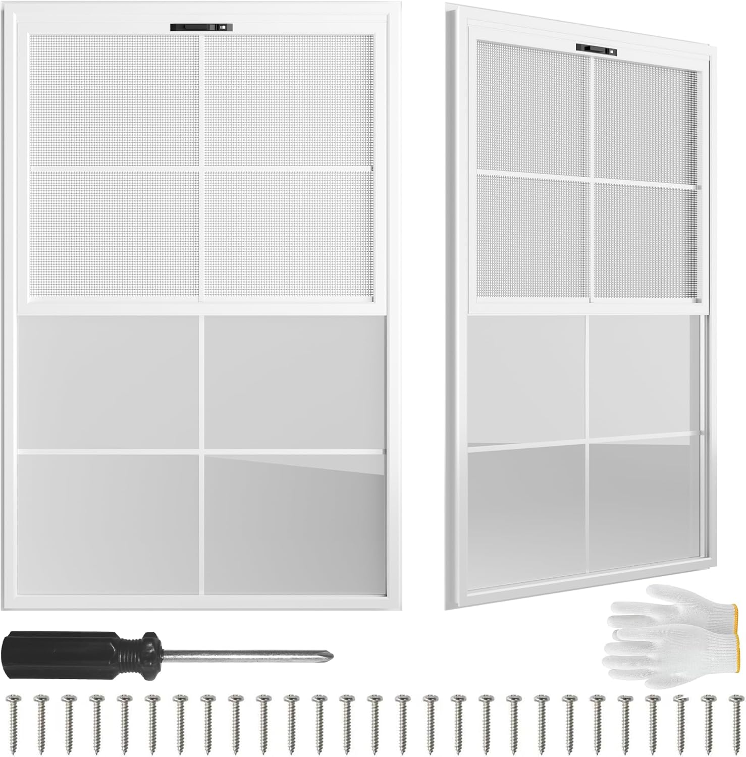 2 Pack 24" x 36"Shed Window, with Tempered Glass and Fiberglass Screen for Shed, Chicken Coop, Playhouse, Household, Garage